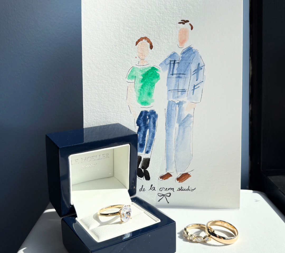 Celebrate your love in an unforgettable way! While you explore our collection, Danielle of de la crem studio will create a stunning portrait of you and your fiancé!