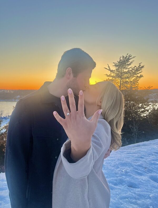 “Austin & I met in Florida 3 years ago while he was living there and I was on vacation. 6 months later, Austin moved from sunny Florida to the frozen tundra to give our relationship a shot… and the rest is history. We got engaged on 3/23/23 at Birkmose Park overlooking the St. Croix River, and afterward Austin surprised me with an engagement party with all of our family and friends. We worked with our dear friend Blaze at R.F. to design a custom engagement ring. I knew I wanted an east-west set solitaire diamond, and Blaze helped us find the perfect stone and setting to bring our vision to life.” -Alex