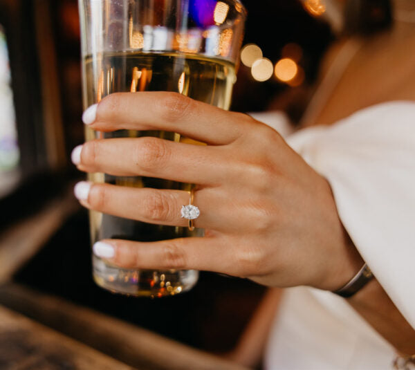 Annelise’s ring is a stunning solitaire oval diamond set in yellow gold.