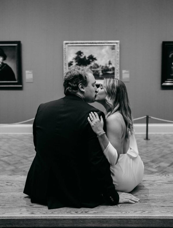“Jack and I met the winter of our senior year of high school, and were officially dating by [Saint Thomas Academy’s] Military Ball in April 2015, which we were able to attend together. In the fall, Jack went off to New Haven, to play football at Yale, while I attended Miami University in Oxford Ohio. In 2019, we both graduated college and moved to Chicago where we could finally live in the same city after 4 years of long distance. We made the best out of Covid, quarantining with family and friends, and on Memorial Day 2022, Jack asked me to marry him on a pier on Lake Michigan overlooking the city. He proposed with a solitaire oval diamond on a gold band – My true dream ring. We are now a year into our engagement, and we have booked our wedding venue at the Whim for September 21, 2024 (a nod to the Earth Wind and Fire song that famously asks, “do you remember the 21st night of September?”). While we’ve been together for 8 years, the magic is still there, and I can’t wait to make Jack Lee my husband!” -Annelise