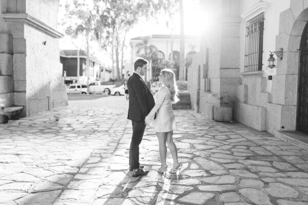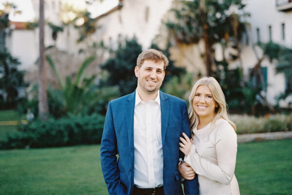 “David and I met in New Orleans right after the pandemic. He proposed in our house saying that he wanted to do it there as that is where we will start our family. We are getting married in my home state of CA on September 21st, 2024. We took our engagement photos near the wedding venue (Santa Barbara County Courthouse & nearby beach).
