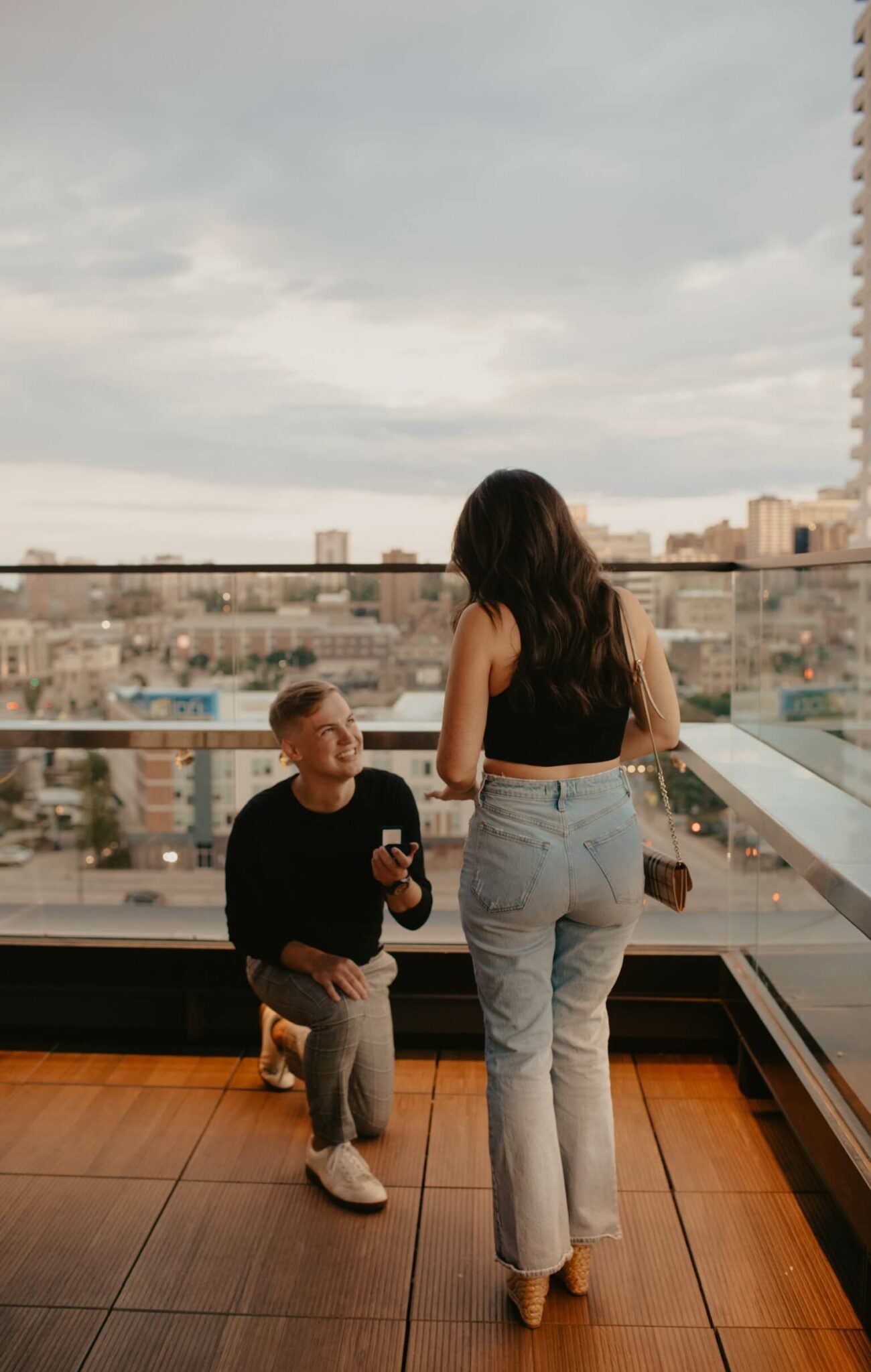 Spencer surprised Marisa with a proposal on a beautiful rooftop in Milwaukee surrounded by friends and family on July 29th!
