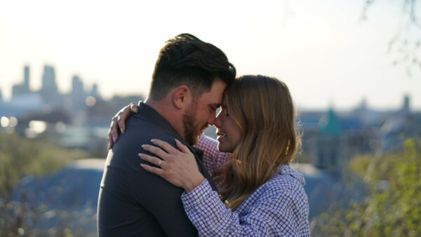 Tyler proposed to Niki at the Prospect Park Tower in Minneapolis. She had no idea it was coming. He wrote her notes about their past dates and times together. The first 4 notes had specific props or pictures about the note he had written to her, so as she was walking up to the tower, she was experiencing these notes and props. The 5th note included students from the youth group that Niki leads and they were all there to surprise her. Her close friends were there to surprise her for the 6th note. The last note was held by their parents. After that, he met her at the proposal spot at the top of Prospect Park complete with a beautiful view of Downtown Minneapolis.