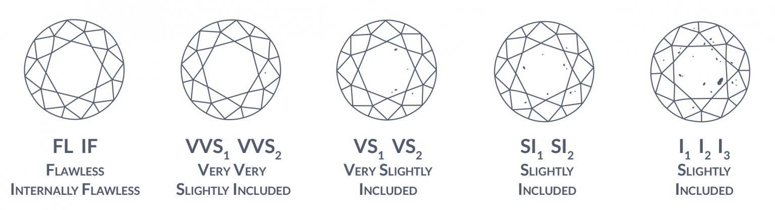 Clarity refers to the absence of inclusions and blemishes. The clarity grade is determined by the number, size, type, and location of inclusions. The fewer and smaller the inclusions, the less they interfere with light as it passes through the diamond. The highest graded diamond will be considered “Flawless.”