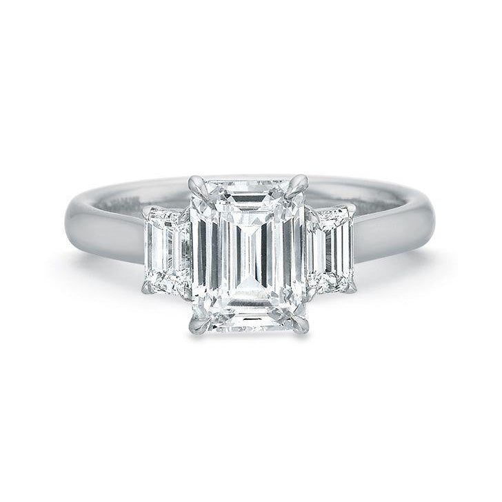 This diamond engagement ring mounting by Precision Set is crafted from platinum and features 0.80 total carats of emerald cut side diamonds. The center diamond is chosen separately.