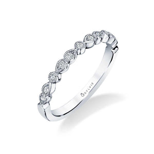 This wedding band by Sylvie is crafted from 18k white gold and features 0.13 total carats of diamonds.
