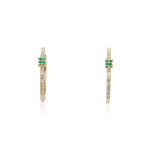 These oval hoop earrings by In Style by Rafael are crafted from 14k yellow gold and feature 0.14 total carats of emeralds and 0.16 total carats of diamonds.