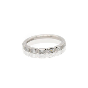 This stunning wedding band from Precision Set is crafted from platinum and features 0.70 total carats of bezel set emerald cut diamonds.