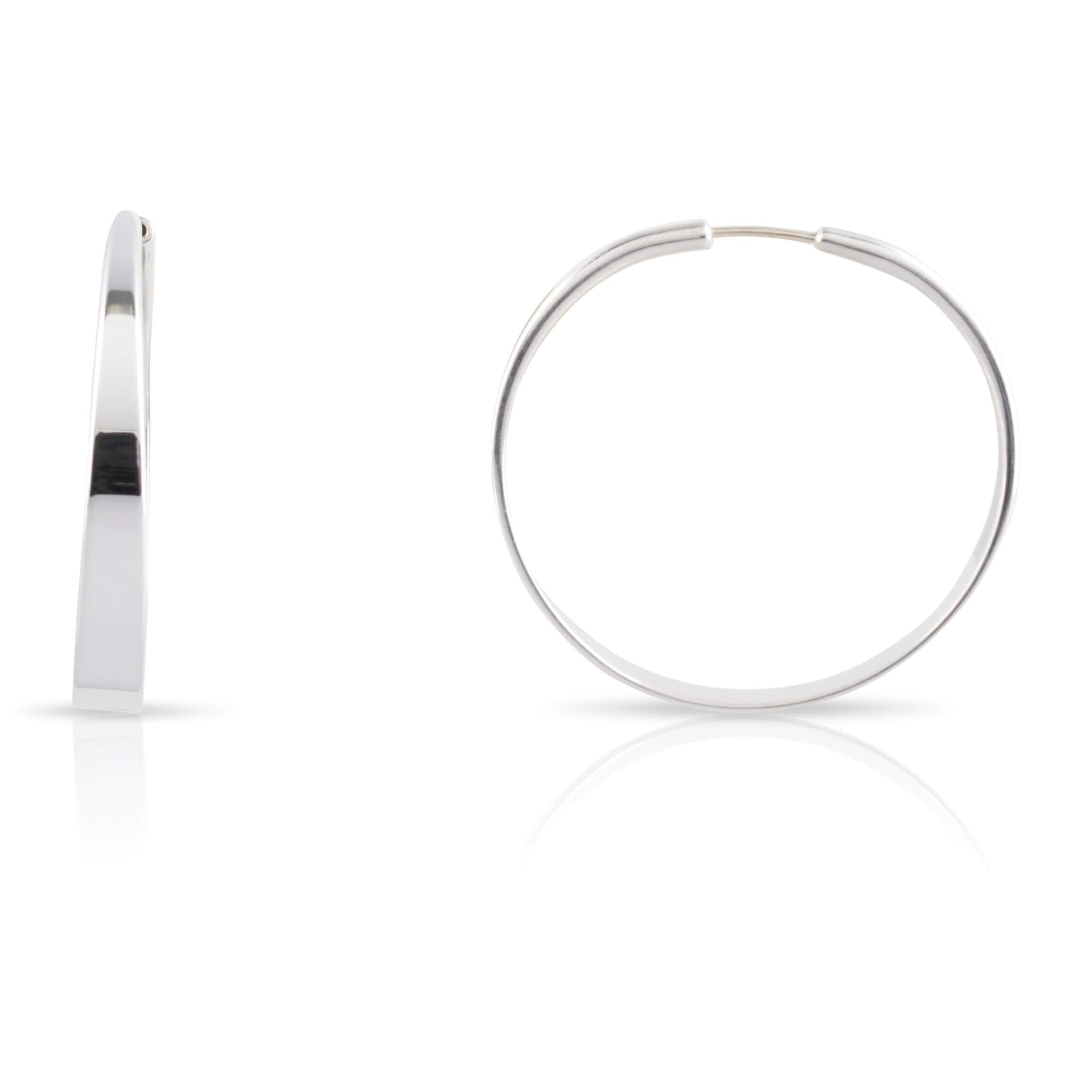 A modern take on classic sterling silver hoop earrings, these Forged Hoop Earrings from Ed Levin are flat with a slightly graduated shape.